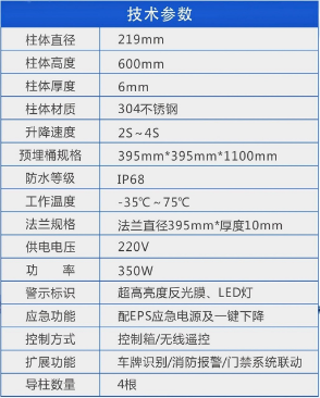 9、防撞等級:4根導柱,k6(相當于60KM/時的撞擊,車子被阻止,設(shè)備照常工作)